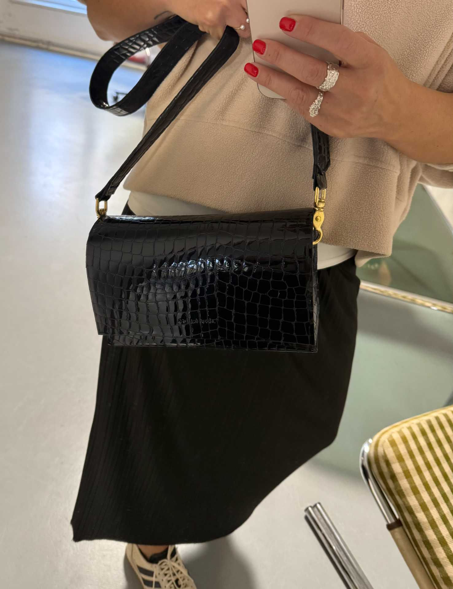 .polohovatelný odepínací pásek crossbody, druhý kratší přes rameno a do ruky, vnitřní kapsa na mobil, zapínání na magnet, logo slepotisk.