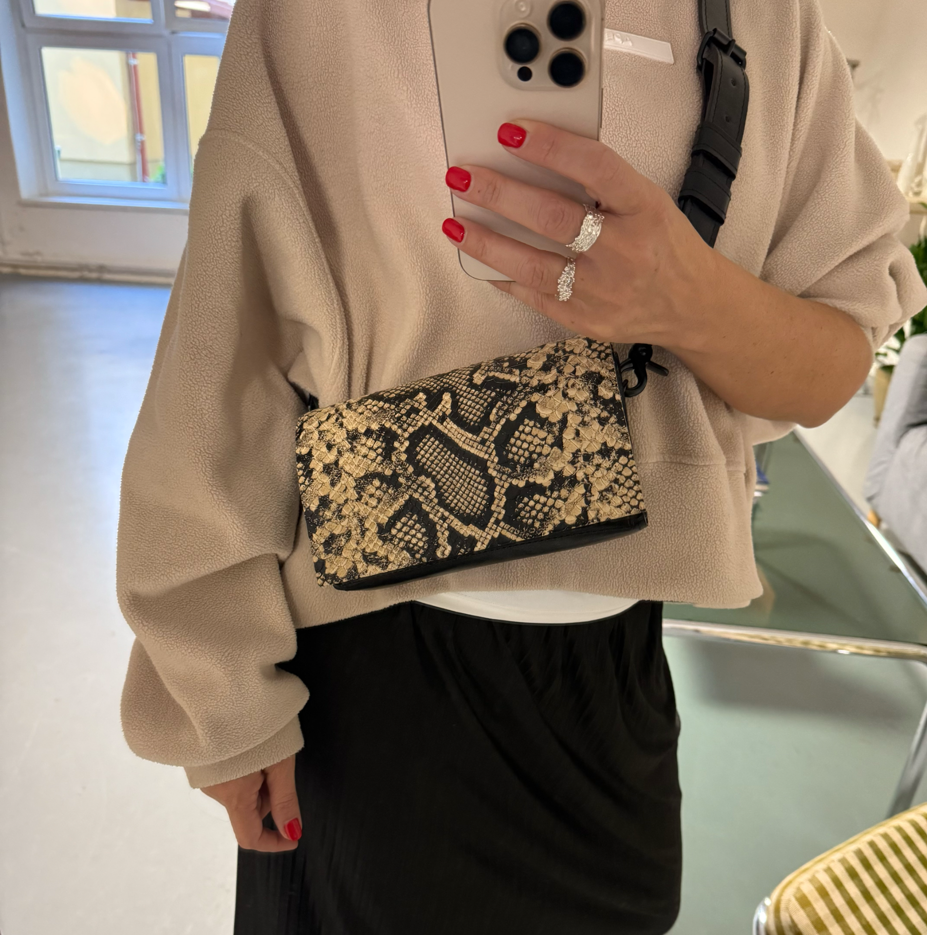 .polohovatelný odepínací pásek crossbody, druhý kratší přes rameno a do ruky, vnitřní kapsa na mobil, zapínání na magnet, logo slepotisk.